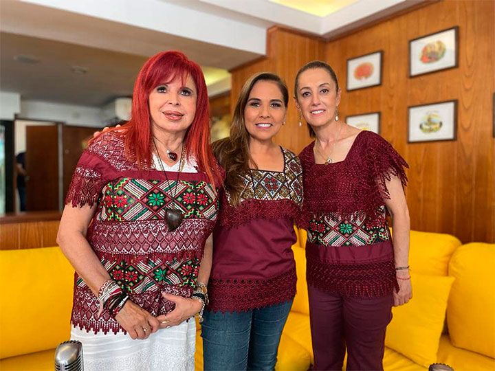 Asimismo, se puede ver a las gobernadoras (también de Morena) Layda Sansores San Román, de Campeche, Indira Vizcaíno, mandataria de Colima, Mara Lezama, de Quintana Roo, y la gobernadora de Guerrero, Evelyn Salgado.