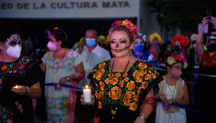 El evento inició con el “Paseo de las Ánimas”, que partió del Museo de la Cultura Maya hacia la Explanada de la Bandera, donde la señora Gaby Rejón de Joaquín cortó el listón inaugural de la exposición de los altares de los 32 estados del país, luego de lo cual realizó un recorrido acompañada de autoridades.