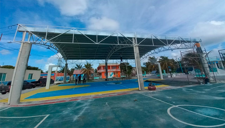 Destacó que en la obra de mejoramiento de infraestructura urbana en la localidad de Xcalak se invirtieron 6 millones 937 mil pesos en diversas acciones como la construcción de un domo de 15 por 20 metros, que es de gran utilidad para las niñas, niños y jóvenes que practican deporte o realizan actividades lúdicas, de igual forma los habitantes pueden ocuparlo como un lugar para eventos públicos.