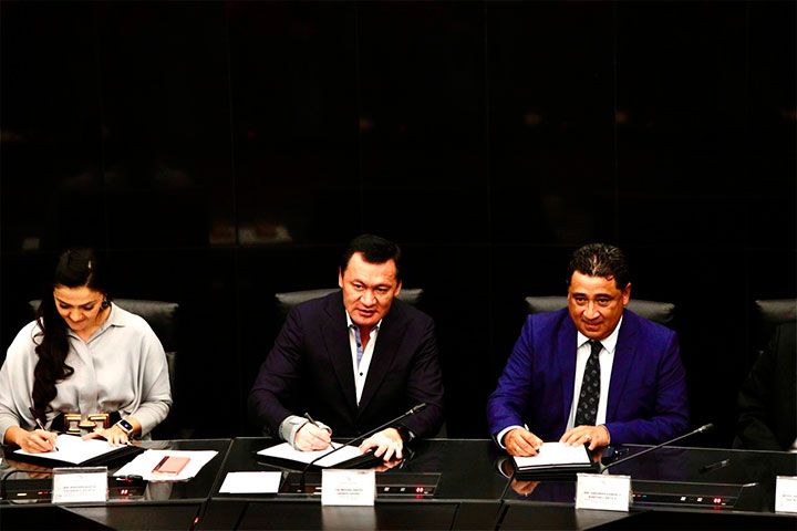 En el evento llevado a cabo en la sede del Senado de la República, también se realizó la firma del convenio de colaboración entre el Instituto Belisario Domínguez de la Cámara Alta y la XVI Legislatura, a través de sus representantes el senador Miguel Ángel Osorio Chong y el diputado Eduardo Martínez Arcila, presidente de la Junta de Gobierno y Coordinación Política, así como la diputada Euterpe Alicia Gutiérrez Valasis, presidenta de la Mesa Directiva del Tercer Año de Ejercicio Constitucional.