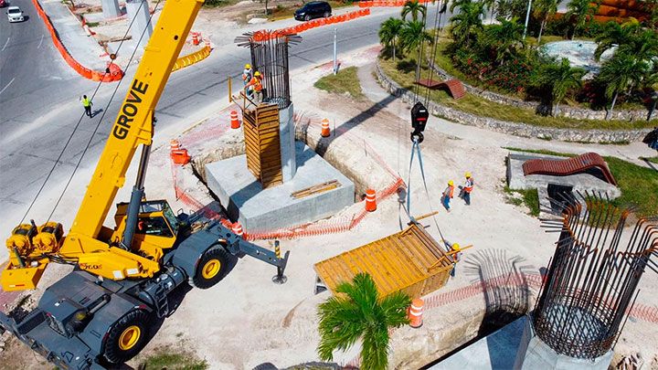 Respecto al puente vehicular sobre el sistema lagunar Nichupté, así como dos entronques con el bulevar Luis Donaldo Colosio y bulevar Kukulcán, en la zona del viaducto se han colado 96 pilas de cimentación, 70 columnas y 12 capiteles. En el entronque Colosio se han colado 95 pilas de cimentación, 16 zapatas y 13 columnas.