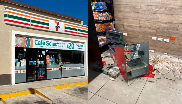 Al menos cinco sujetos, aparentemente encapuchados, arribaron esta madrugada a una tienda Seven Eleven, para amarrar a los empleados, destruir un cajero automático ATM y luego huir con la caja fuerte y dinero en efectivo, esto en el fraccionamiento Santa Fe de esta ciudad.