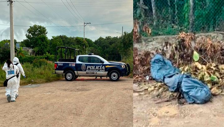 El cuerpo sin vida de una persona que fue asesinada, amarrada y envuelta en bolsas de basura, fue hallado esta mañana en la Región 205 de esta ciudad, correspondiente a la colonia Cuna Maya.