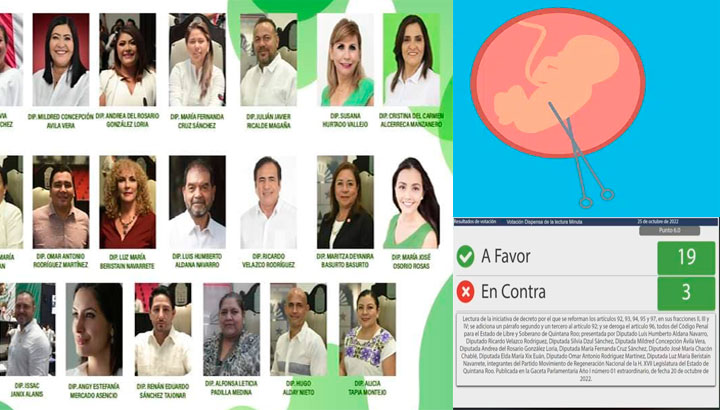 Con 19 votos a favor, tres en contra y cuatro abstenciones, el Congreso de Quintana Roo aprobó reformas para legalizar el aborto en Quintana Roo, iniciativa que fue discutida durante las primeras horas de este jueves en medio de protestas de grupos «Provida».