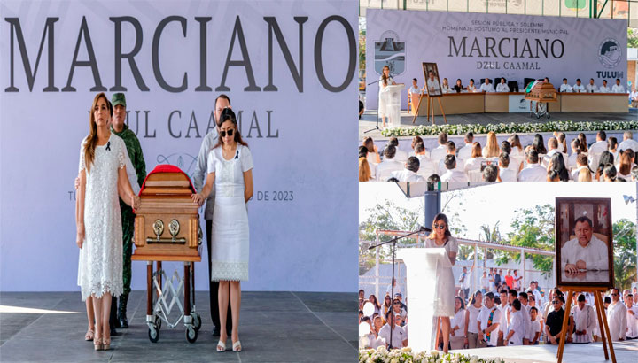 “Marciano, el mejor esposo del mundo, el padre ejemplar, el líder de nuestro municipio, ha sido mi compañero, mi mejor amigo, mi soporte, mi inspiración para dar cada día lo mejor para mi familia y para Tulum. Tu vida es y será siempre un ejemplo de fortaleza, tenacidad, visión y fe, un hombre sencillo, sin letra, que muchos menospreciaban, pero eso no fue limitante, al contrario, siempre demostró ser el mejor. Solo tengo palabras de agradecimiento y amor hacia Dios, nuestro Señor, por habernos puesto en el mismo camino durante 13 años de hermoso matrimonio. Con la frente muy en alto porque todo lo que él hizo, lo hizo por amor a su pueblo, lo hizo por amor al necesitado. Para ti Marciano, mi amor eterno, no es un adiós sino un hasta luego”, expresó la también presidenta honoraria del DIF-Tulum.
