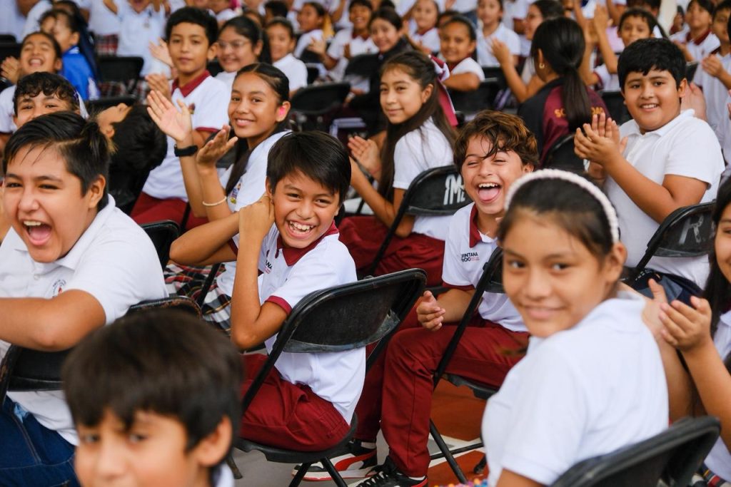 Acompañada de alumnas y alumnos, padres de familias, maestras y maestros, en un ambiente festivo, la gobernadora Mara Lezama Espinosa inauguró el nuevo domo de la escuela primaria “Artículo Tercero Constitucional” del fraccionamiento Galaxia 1, como parte del programa estatal de construcción de 1,109 instalaciones de este tipo en todo Quintana Roo.