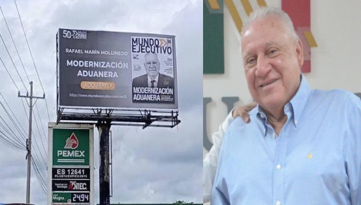 La fortaleza y ambivalencia del ya declarado aspirante a la gubernatura de Quintana Roo, director nacional de Aduanas Rafael Marín Mollinedo, con la esperanza de captar votos en el contexto electoral 2027, con la persistencia de promoción visual, considerada como infracción electoral, la instalación de un magno espectacular carretero difundiendo su imagen.