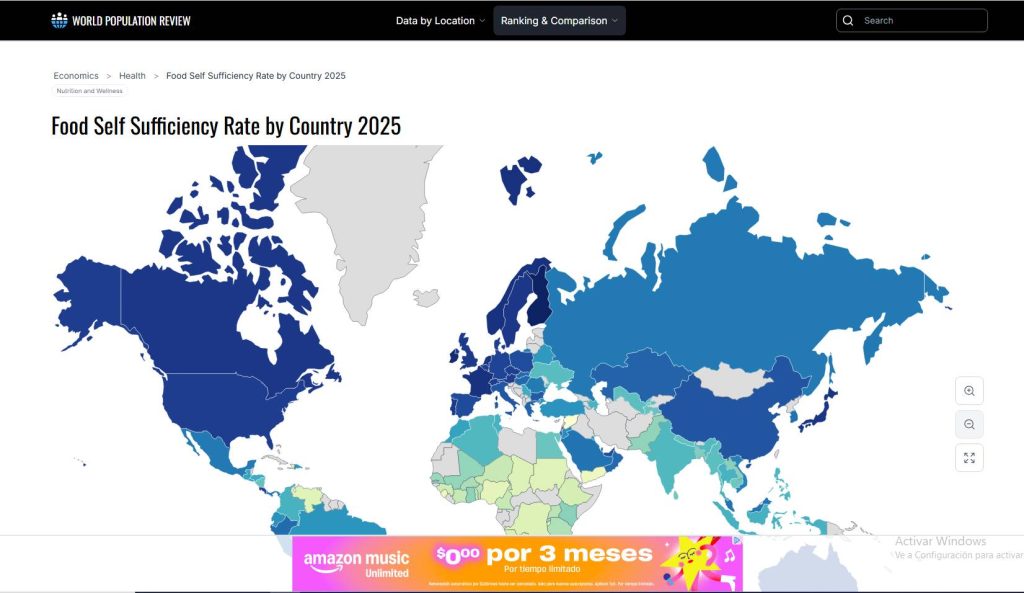 En julio de 2025, otra organización midió la autosuficiencia alimentaria de varios países. Entre los 50 mejor evaluados no está México, los 5 países mejor evaluados son: Guyana, Vietnam China, Omán, y Vanauto.