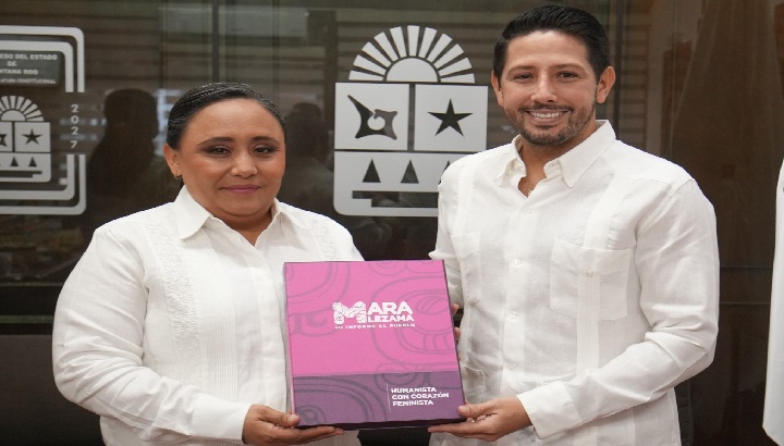 “El Tercer Informe detalla el cumplimiento de objetivos de la gobernadora Mara Lezama mejor evaluda del país, al brindar a la ciudadanía mayor bienestar social y calidad de vida, seguridad, desarrollo económico inclusivo, protección del medio ambiente y crecimiento sustentable y un gobierno honesto y transparente” dijo Cristina Torres al entregar el documento a la diputada presidenta de la Mesa Directiva, Silvia Dzul Sánchez.