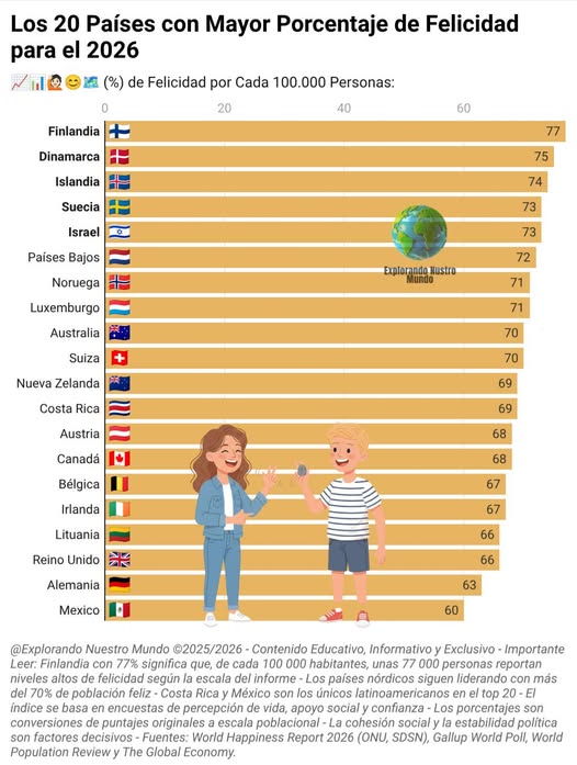 Para celebrar el 20 de marzo, Día Internacional de la Felicidad, se publicó el Reporte 2026 de Felicidad en el Mundo. Este reporte es publicado por el Centro de Investigaciones sobre el Bienestar de la Universidad de Oxford, con la participación de Gallup, la Red de Soluciones sobre Desarrollo Sostenible de la ONU, y un comité editorial independiente.