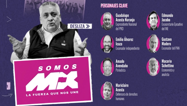 Apéndice del Frente Cívico Nacional e inspirándose en el colectivo “Meada Rosada” -Marea Rosa– aquella que dio fallido apoyo a la interpelante opositora del PRIAN en la elección presidencial de 2024, Bertha Xóchitl Gálvez Ruiz. -craso intento-. Ahora se está asomando el partido de oposición Somos México -SomosMX-.