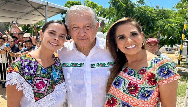 En la imagen de algunos ayeres vemos al Presidente Andrés Manuel López Obrador con Ana Paty Peralta y la gobernadora Mara Lezama.