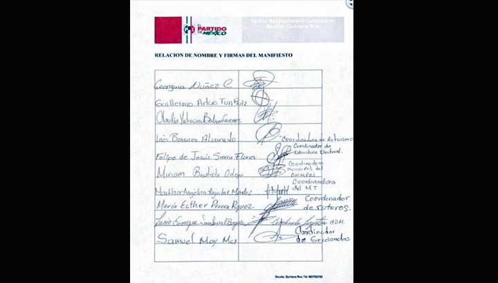 “En caso de que la candidatura del partido recaiga en una persona que no ha cumplido en el futuro cercano (sic) como militante activo y sean pisoteados los intereses de los priistas del municipio de Bacalar nos veremos en la penosa necesidad de renunciar a nuestras labores encomendadas y a nuestra militancia dentro de la estructura municipal del partido”, amenazan en la misiva, y fuera de la misiva de plano dicen que van a trabajar a favor de Morena y aliados.