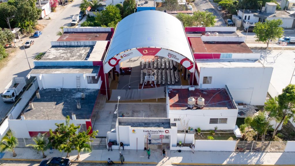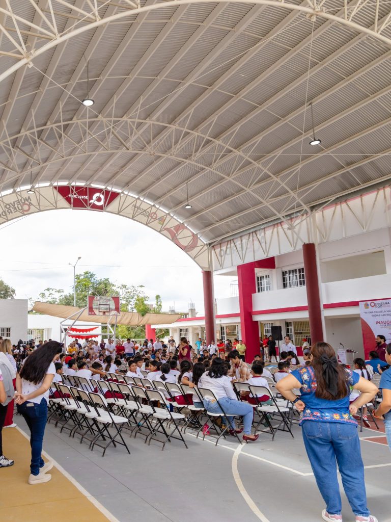 Más de 500 alumnas y alumnos de la escuela primaria Tulum cuentan ahora con un espacio techado que les brinda mayor comodidad y seguridad para el desarrollo de sus actividades académicas, cívicas y deportivas, resultado del trabajo coordinado entre el Gobierno del Estado que encabeza la gobernadora Mara Lezama y el gobierno municipal que lidera Diego Castañón Trejo.