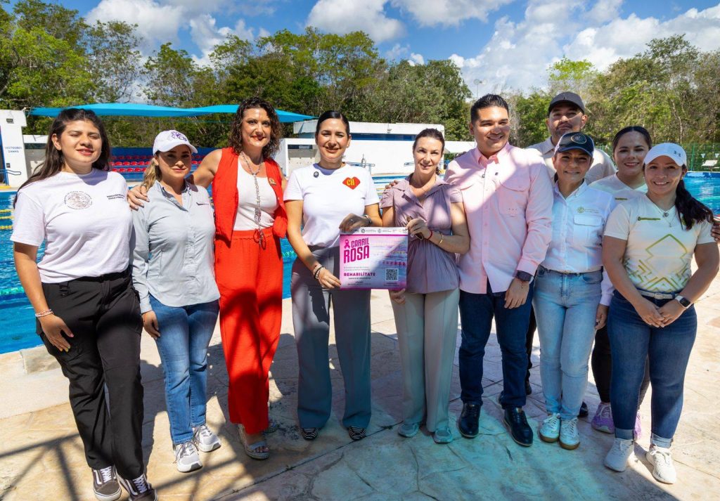 La presidenta municipal Estefanía Mercado anunció el programa “Carril Rosa”, en la alberca olímpica de la Undiad Deportiva Riviera Maya, como parte de una iniciativa interinstitucional orientada a brindar atención especializada a mujeres que enfrentan problemas de salud derivados del linfedema, con prioridad para aquellas en situación de vulnerabilidad.