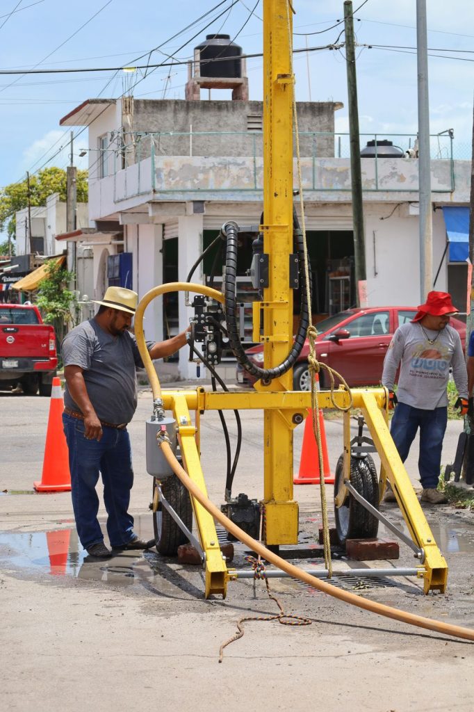 Ante la próxima temporada de lluvias, la presidenta municipal, Yensunni Martínez Hernández, ha puesto en marcha trabajos de prevención mediante la limpieza y el desazolve de pozos de absorción del sistema de drenaje pluvial, utilizando maquinaria especializada tipo drill, recientemente adquirida y operada por personal capacitado.