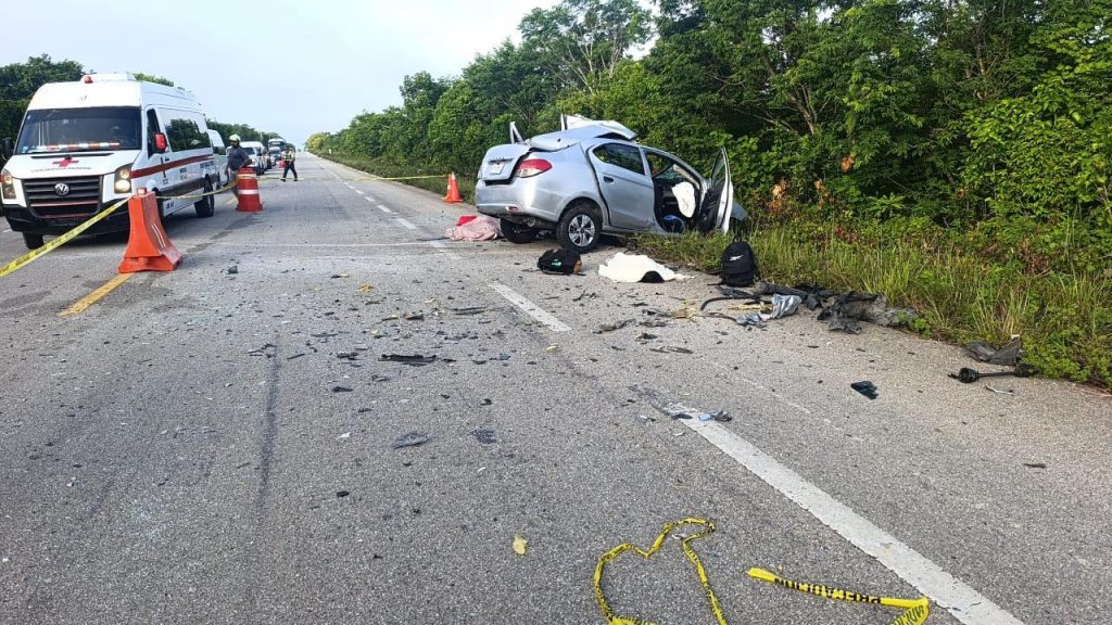 Un total de tres muertos, entre ellos un menor de edad, y seis heridos dejó esta mañana un brutal choque entre un vehículo particular y una combi de pasajeros de la Unión Nacional de Transportistas (UNTRAC), en el tramo Felipe Carrillo Puerto-Tulum.