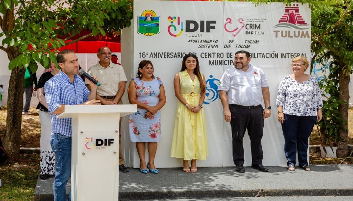 En un ambiente de alegría y fiesta el presidente municipal Diego Castañón Trejo, la C.P. Belia Beltrán Aguilera, Directora General del Sistema para el Desarrollo Integral de la Familia (DIF), celebraron el 16º aniversario del Centro de Rehabilitación Integral Municipal de Tulum (CRIM), que ha brindado atención a cientos de niñas, niños, adolescentes, jóvenes y adultos mayores a través de terapias físicas, psicológicas, ocupacionales, de lenguaje entre otras, para mejorar la calidad de vida de las y los tulumnenses.