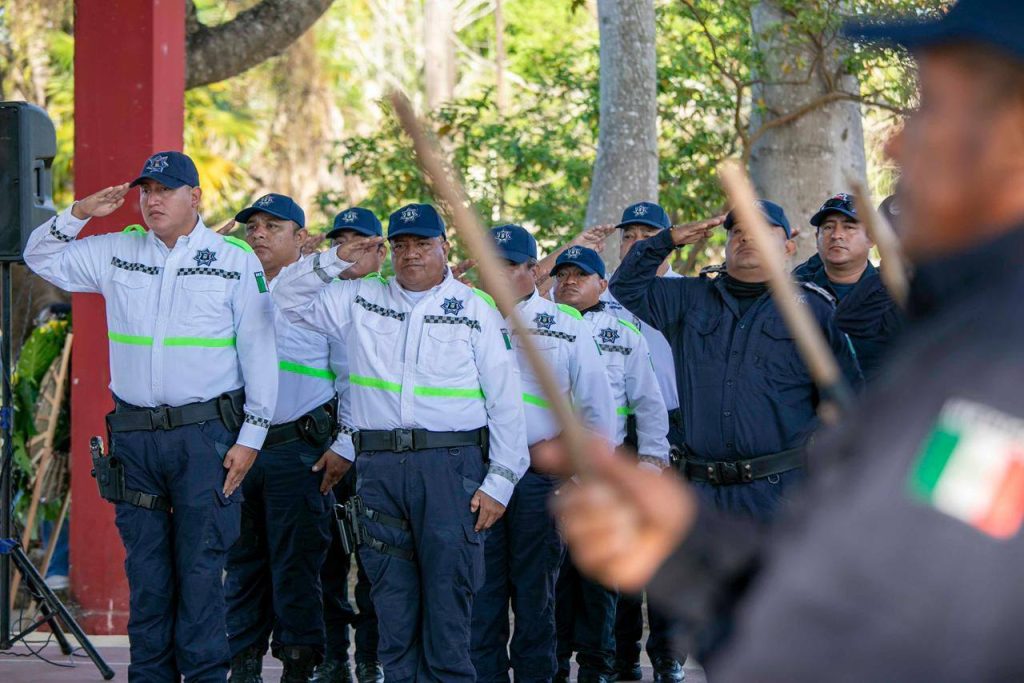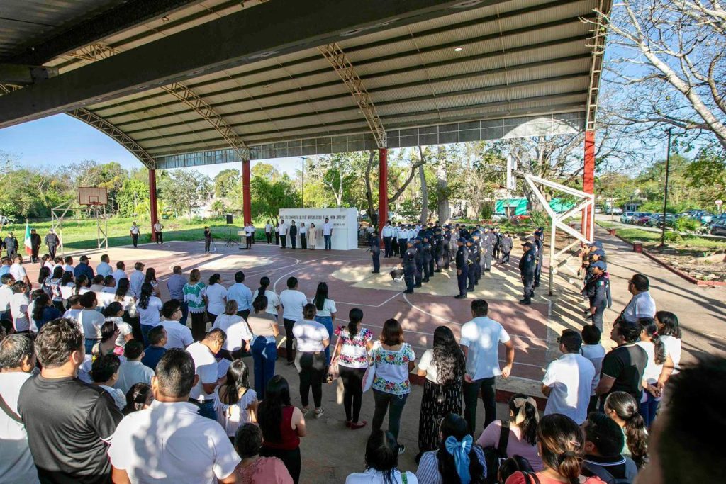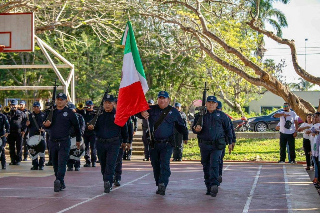 Durante la ceremonia se rindieron honores a la bandera y se entonaron los himnos de Quintana Roo y Nacional Mexicano, con el acompañamiento de la banda de guerra de la Dirección de Seguridad Pública, Tránsito y Bomberos municipal.