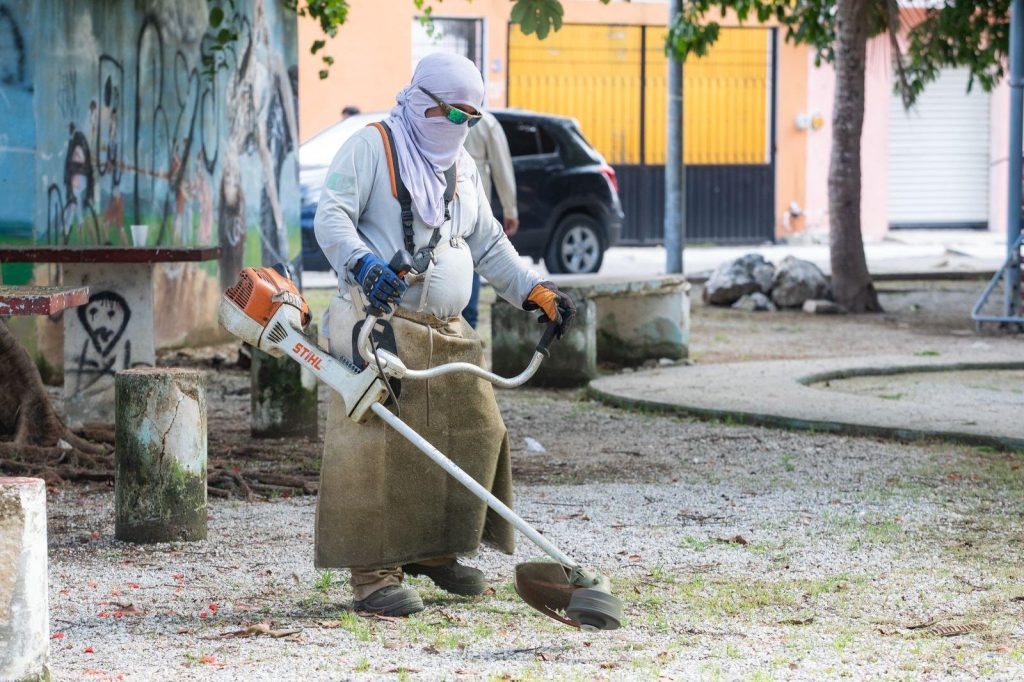 La presidenta municipal Estefanía Mercado encabezó este día la Mega Brigada de Servicios Públicos en la alcaldía de Puerto Aventuras, con la participación de más de 100 trabajadores de la dependencia, quienes, desde temprana hora, realizaron labores de bacheo, limpieza de parques, mantenimiento de luminarias y desazolve de pozos de absorción, entre otras acciones.