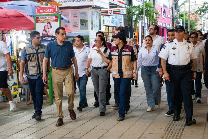 En atención a una demanda social y con el firme objetivo de elevar la competitividad turística y garantizar un entorno urbano seguro, funcional y digno para visitantes y residentes, la presidenta municipal Estefanía Mercado encabezó un recorrido de supervisión a lo largo de la icónica Quinta Avenida, acompañada por titulares de las principales áreas operativas de su gobierno.