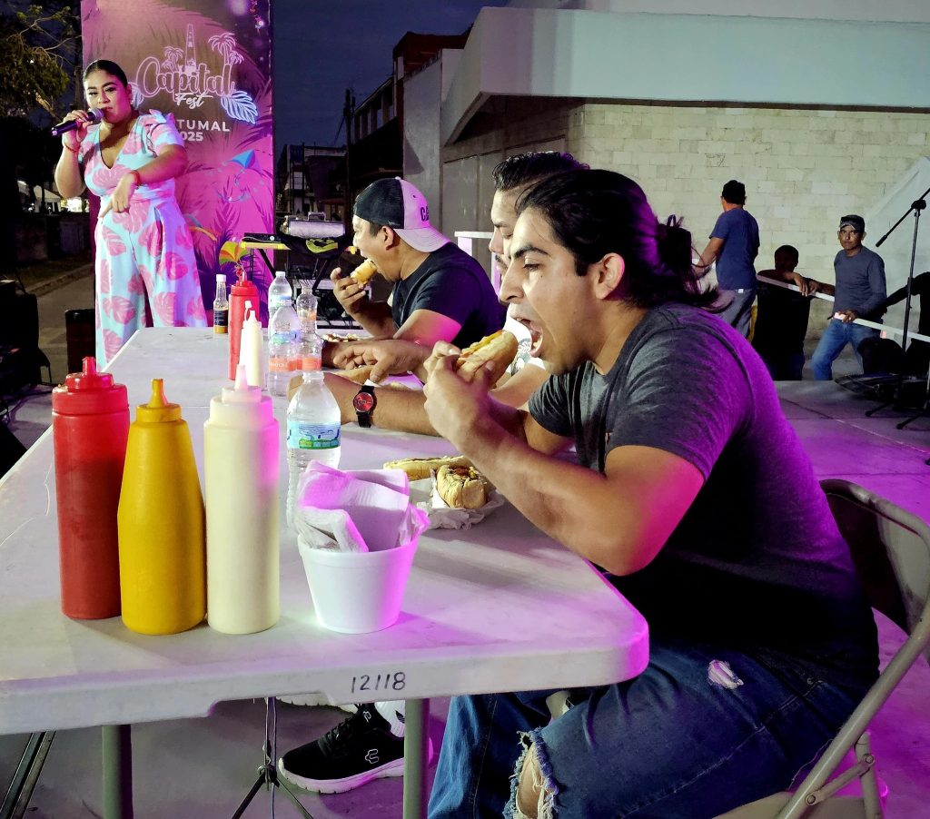 El concurso de comer más «hochos» tuvo una final muy reñida y emocionante, teniendo como campeón indiscutible a Sergio Alfaro, quien demostró su amor por la comida al devorarse 12 hot dogs.