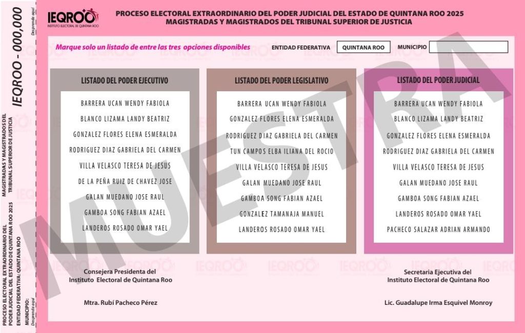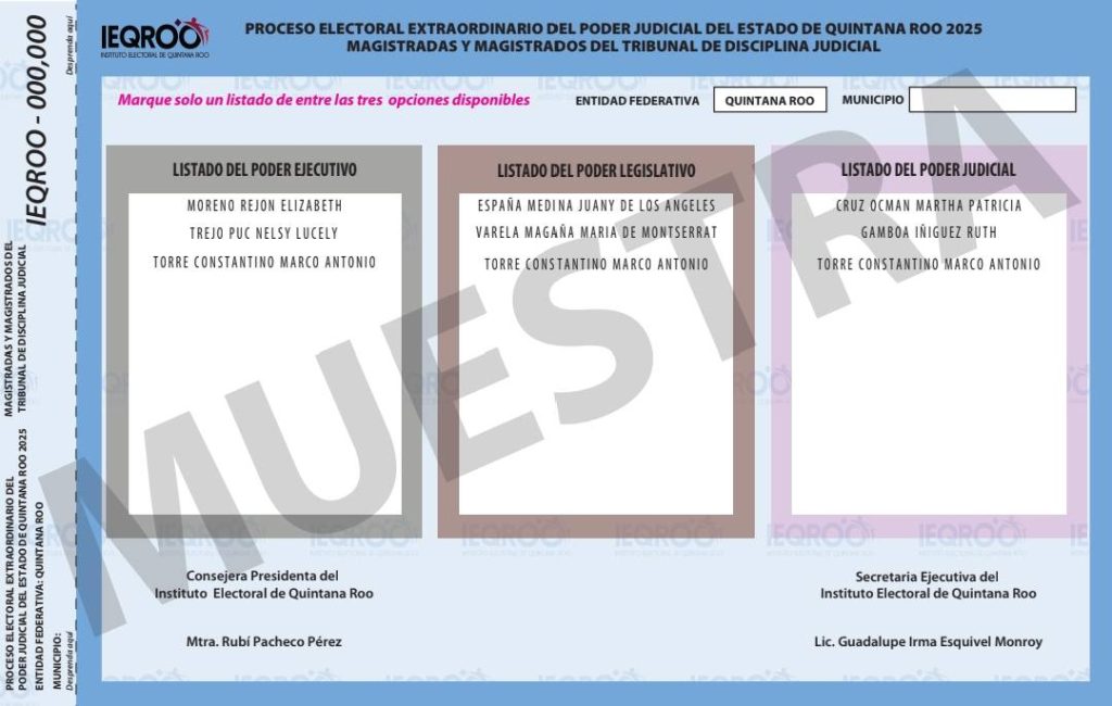 En sesión extraordinaria con carácter de urgente el Consejo General para la elección de personas juzgadoras del Instituto Electoral de Quintana Roo (IEQROO), aprobaron por unanimidad el Acuerdo por medio del cual se determina respecto de las adecuaciones a los diseños definitivos de la documentación electoral para el Proceso Electoral Extraordinario del Poder Judicial del Estado de Quintana Roo 2025 aprobada mediante Acuerdo IEQROO/CGEPJ/A-039-2025, en acatamiento de la sentencia emitida por el Tribunal Electoral de Quintana Roo, dentro del expediente RAP/009/2025.