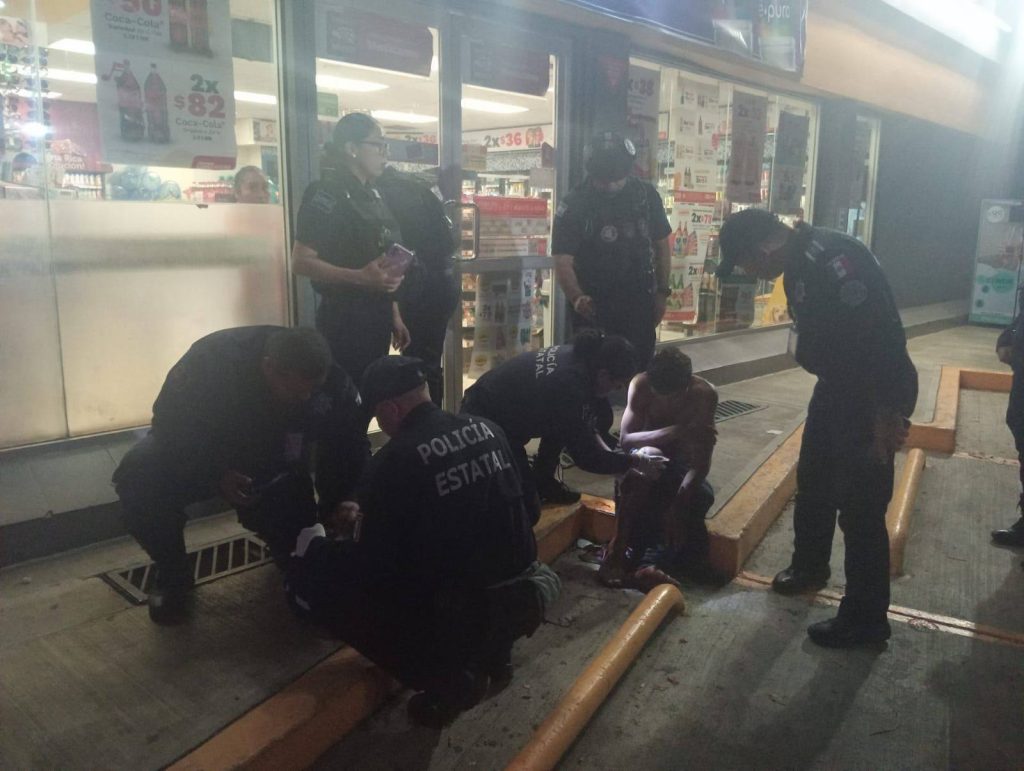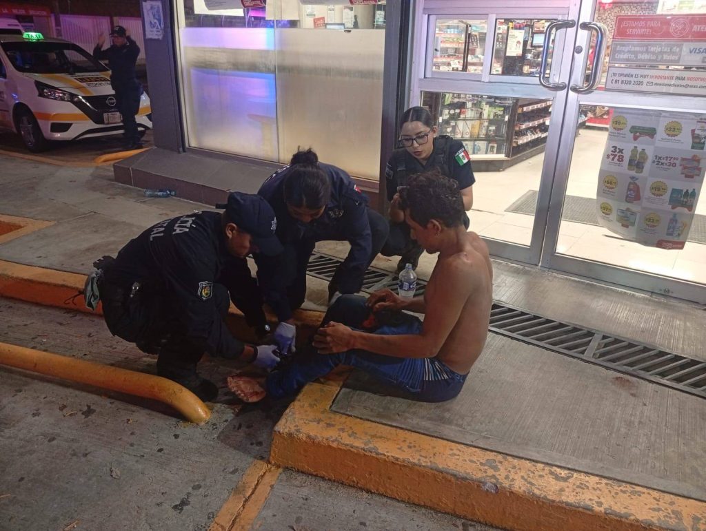 Llegó a la tienda de conveniencia, donde fue auxiliado por el personal, pues presentaba una hemorragia.