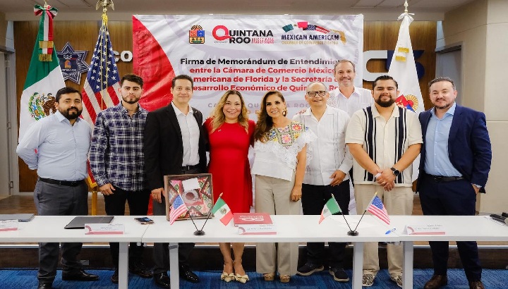 Este memorándum, firmado entre la Cámara de Comercio México-Americana de Florida, ante la presencia de la Presidenta y CEO Alma Aguilar, con la Secretaría de Desarrollo Económico, permitirá consolidar una alianza estratégica binacional para promover la internalización de empresas quintanarroenses en Florida, mediante impulso a la oferta exportable de productos locales.