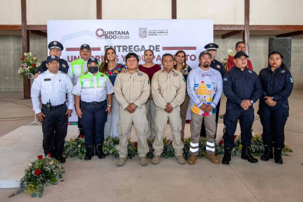 Con una inversión importante, la Presidenta Municipal de Felipe Carrillo Puerto, Mary Hernández y la Gobernadora, Mara Lezama, entregaron uniformes al personal operativo de Seguridad Pública, Tránsito y Bomberos y cuerpo operativo del Ayuntamiento, además, reconocieron su desempeño que fortalece la tranquilidad, la paz y el bienestar de las familias.