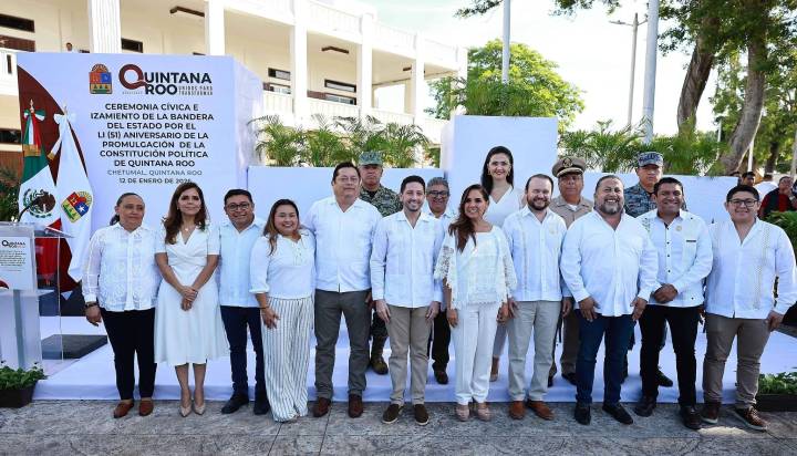 En un acto encabezado por la gobernadora del estado, Mara Lezama Espinosa, se llevó a cabo la Ceremonia Cívica e Izamiento de la Bandera del Estado con motivo del 51 Aniversario de la Promulgación de la Constitución Política de Quintana Roo, donde el presidente del Congreso, Renán Sánchez Tajonar, destacó que la Constitución es el pilar que guía la transformación, la justicia y el bienestar de las y los quintanarroenses.