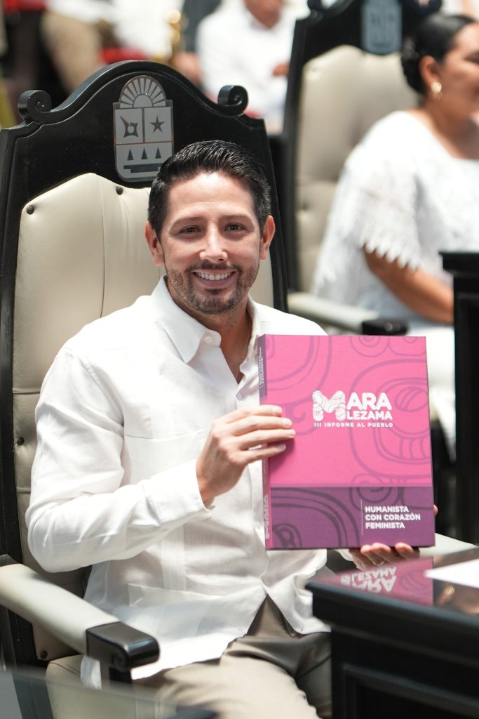 Lo anterior, en el marco de la sesión solemne, donde la XVIII Legislatura recibió el Tercer Informe de Gobierno de la gobernadora Mara Lezama Espinosa, documento entregado por la secretaria general de Gobierno, Cristina Torres.