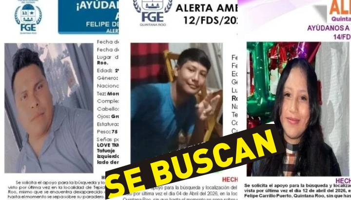 En el primer caso, la FGE Quintana Roo activó la ficha de búsqueda de Felipe de Jesús Che Tuyub de 29 años, visto por última vez el martes 3 de marzo de 2026, en la localidad de Tepich; el segundo caso, es el del menor José Alberto May Pat de 15 años, visto por última vez el sábado 4 de abril de 2026, en la localidad de Señor; el tercer caso es el de Mari Flor May Caamal de 19 años, vista por última vez el domingo 12 de abril de 2026.