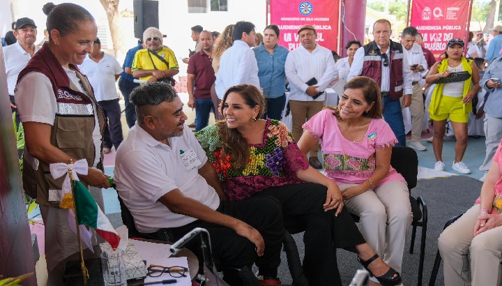 “Así construimos el segundo piso de la Cuarta Transformación, en territorio, atendiendo personalmente y en el momento a las personas; nada de “buscáme mañana”, “vamos a tal lugar”, afirmó Mara Lezama al inicio de la audiencia, acompañada por la presidenta honoraria del DIF Quintana Roo, Verónica Lezama Espinosa, y la presidenta municipal de Isla Mujeres, Atenea Gómez Ricalde.