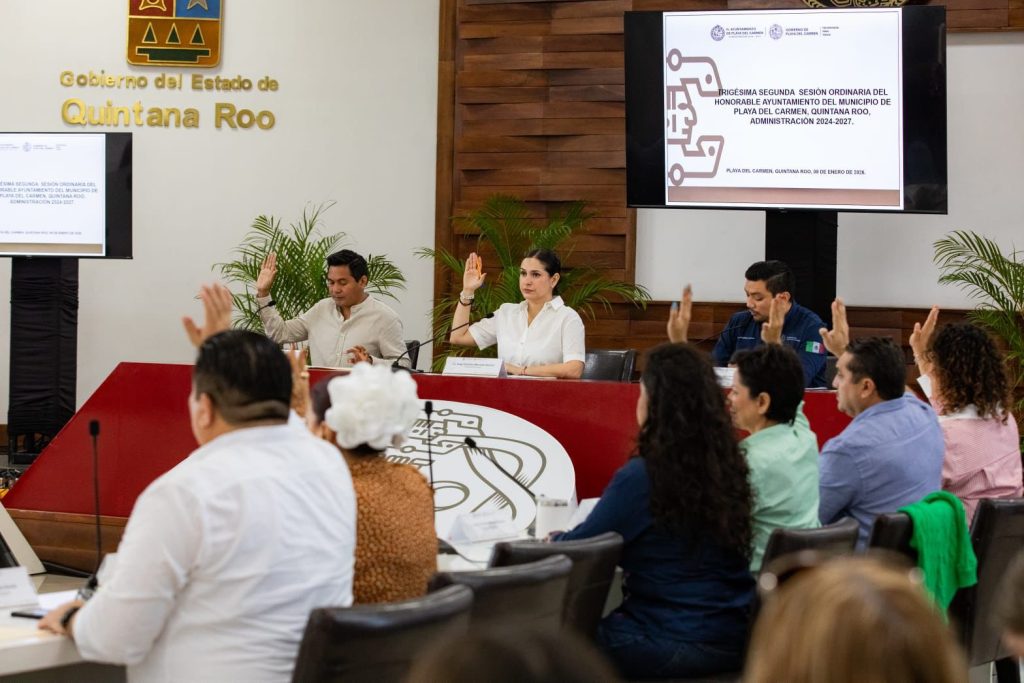 La presidenta municipal Estefanía Mercado encabezó la Trigésima Segunda Sesión Ordinaria de Cabildo, en la que fueron aprobadas reformas al párrafo tercero del artículo 10 de la Constitución Política del Estado de Quintana Roo, enviada por la XVIII Legislatura del Congreso del Estado para su validación por los ayuntamientos.