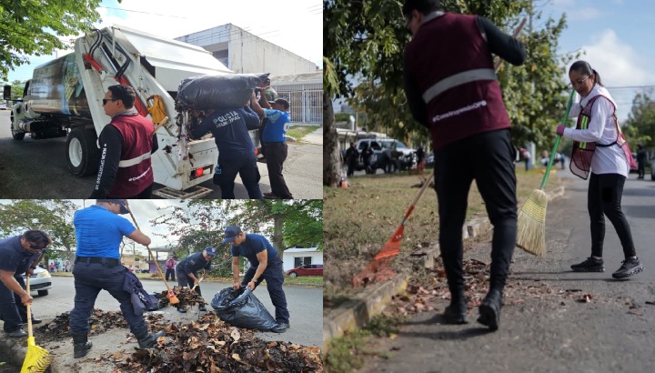 Más de 100 servidoras y servidores públicos municipales se dieron a la tarea de limpiar y recoger basura, ramas y hojarasca de la vía pública, para evitar que en temporada de lluvias sea arrastrada y llegue hasta los drenajes, previniendo así posibles encharcamientos o inundaciones.