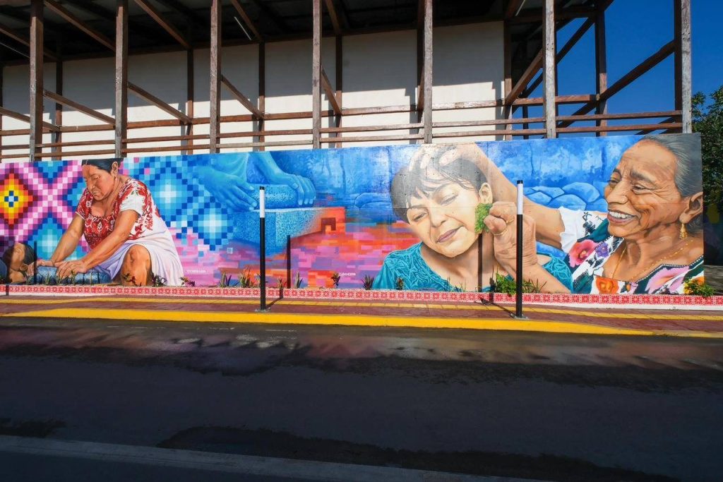Los colores verde representan Sian Ka´an, los ecosistemas acuáticos, arrecifes de coral y el turismo comunitario; el rojo es la cultura y la historia. Se reflejan a los cruzoob, Tihosuco, los caudillos, la historia de la Santa Cruz, del chicle; a las mujeres en la historia que encarnan resistencia, sabiduría y liderazgo, como Rita Cetina, Elvia Carrillo Puerto, Rosa Torres, Felipa y María Uicab, junto con representaciones colectivas como parteras, curanderas, sacerdotisas y guerreras; las bordadoras, artesanas, leyendas como la Xtabay. Incluso hay un mural que refleja a Pedro Infante con su gran amigo Ruperto Prado.
