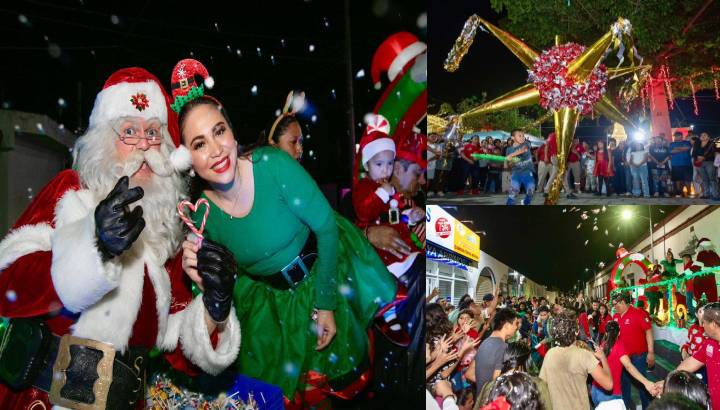 En la caravana navideña las familias salieron a saludar a Papá Noel, “Santa Claus”, Mary Hernández y la enorme fila de unidades alusivas a la Navidad que arrojaban luces y juguetes.