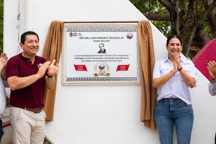 La presidenta municipal Estefanía Mercado encabezó la conmemoración del 25 aniversario de la Escuela Secundaria Técnica Número 23 “Juan Rulfo”, donde reafirmó que en Playa del Carmen la educación es una prioridad del gobierno y un derecho humano que transforma vidas.
