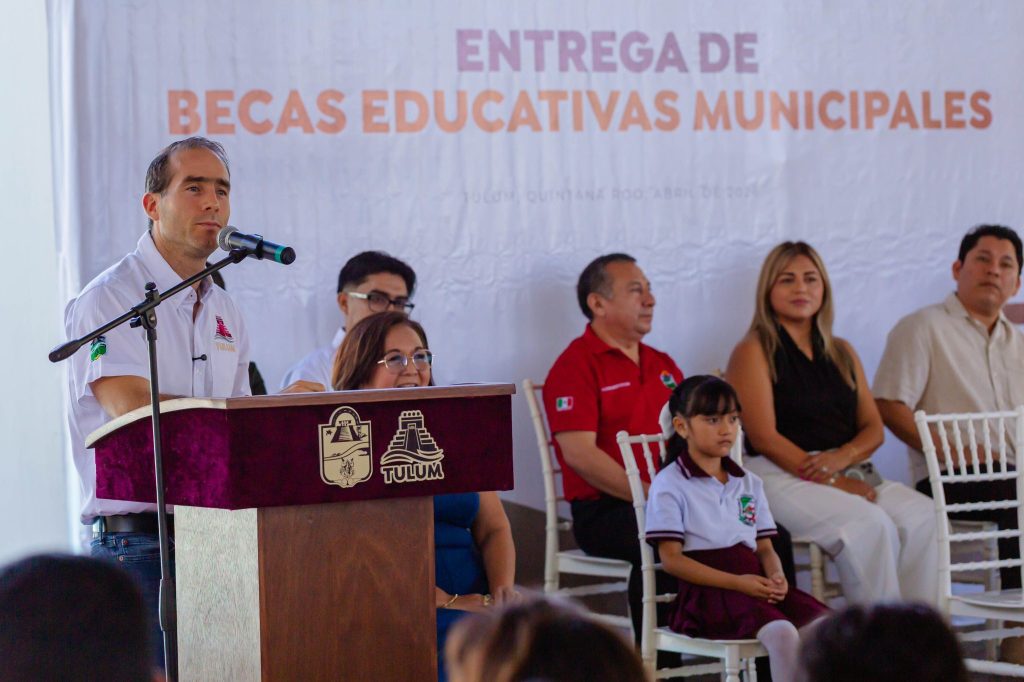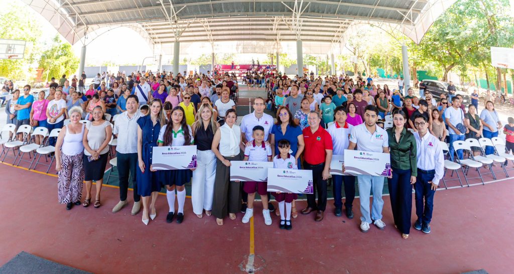 Para garantizar el derecho pleno a la educación de niñas, niños y jóvenes de Tulum, el presidente municipal, Diego Castañón Trejo, encabezó la “Primera Entrega de Becas Educativas Municipales 2026”, en la que se benefició a mil estudiantes de todos los niveles educativos, con el objetivo de evitar la deserción escolar por falta de recursos económicos.