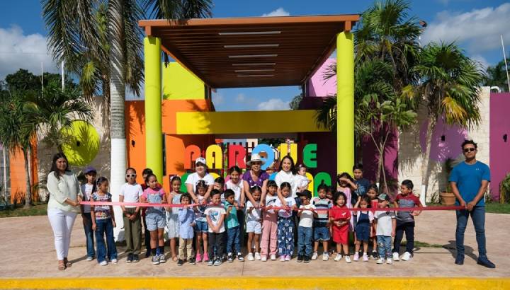 La gobernadora Mara Lezama Espinosa y la presidenta municipal Mary Hernández inauguraron y entregaron al pueblo carrilloportenses el renovado y transformado parque infantil La Colmena.
