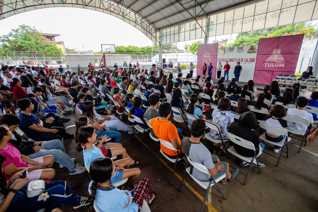 En beneficio directo a la economía de familias tulumnenses este día, en coordinación con la iniciativa privada, el gobierno de Tulum que encabeza Diego Castañón Trejo, hizo entrega de 400 pares de zapatos a la misma cantidad de niñas y niños de nivel secundaria en el marco de inicio de clases.
