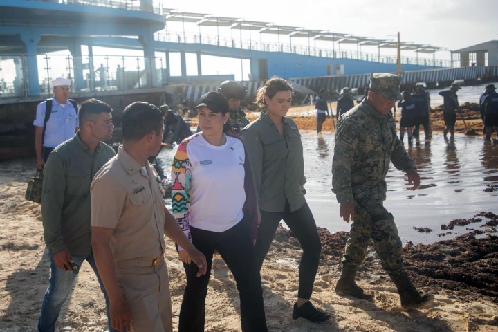 En un despliegue sin precedentes de coordinación y compromiso institucional, la presidenta municipal de Playa del Carmen, Estefanía Mercado, encabezó este jueves un recorrido por las playas Fundadores y Playacar, donde constató el avance del operativo conjunto con la Secretaría de Marina (SEMAR) y ZOFEMAT para enfrentar el arribo masivo de sargazo que afecta al litoral del Caribe mexicano.