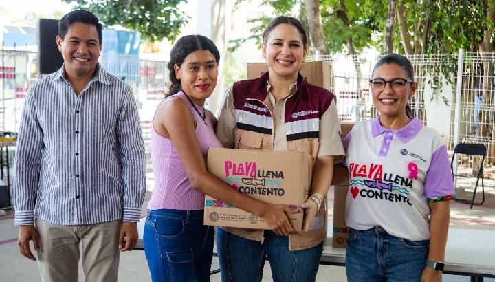 La presidenta municipal Estefanía Mercado, acompañada por la secretaria de Justicia Social y Participación Ciudadana, Deyanira Martínez Estrada, encabezó este viernes la entrega de los primeros apoyos alimentarios del programa “Playa Llena, Corazón Contento”, correspondientes al mes de octubre, en beneficio de más de tres mil familias playenses en situación de vulnerabilidad.