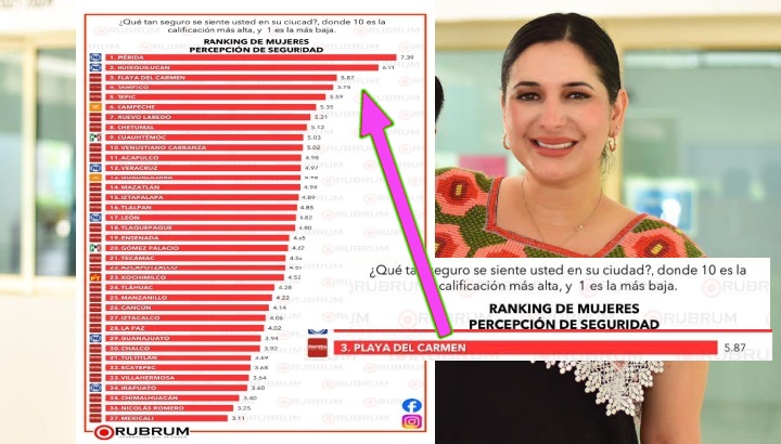 El estudio, realizado entre el 2 y el 7 de junio de 2025, evaluó la percepción ciudadana sobre diversos temas, entre ellos la seguridad, donde Playa del Carmen se colocó en el cuarto lugar general y el tercero entre los municipios más seguros con alcaldesas.