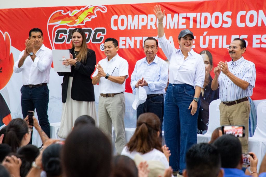 En el marco de la entrega de 32 mil 400 paquetes de útiles escolares para hijos de trabajadores croquistas en todos los niveles educativos, donde también estuvo Martín de la Cruz, dirigente estatal de la organización, la alcaldesa dirigió un emotivo mensaje a niñas, niños y jóvenes: