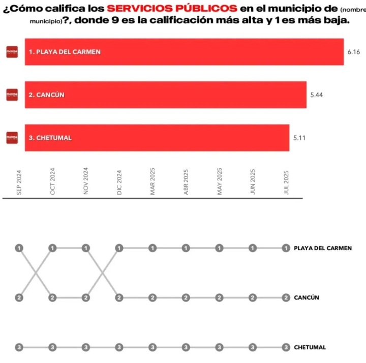 • 6.16 puntos en servicios públicos, superando a Cancún (5.44) y Chetumal (5.11).