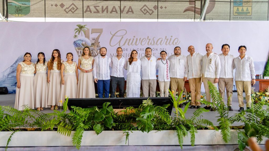 «Hoy celebramos que somos una comunidad vibrante, un pueblo que ha labrado su destino con sus propias manos, un pueblo colmado de historia, sacrificio, pero sobre todo, de sueños», mencionó el presidente Diego Castañón Trejo, durante la ceremonia de conmemoración del Décimo Séptimo Aniversario de Tulum como noveno municipio de Quintana Roo.