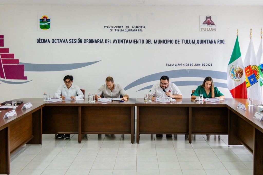 Para continuar garantizando acuerdos que faciliten políticas públicas y procesos administrativos en beneficio de las y los tulumnenses, este día se llevó a cabo la Décimo Octava Sesión Ordinaria del Ayuntamiento de Tulum, que encabezó el presidente Diego Castañón Trejo , en esta ocasión para instaurar un área que atienda las quejas y demendas en Derechos Humanos.