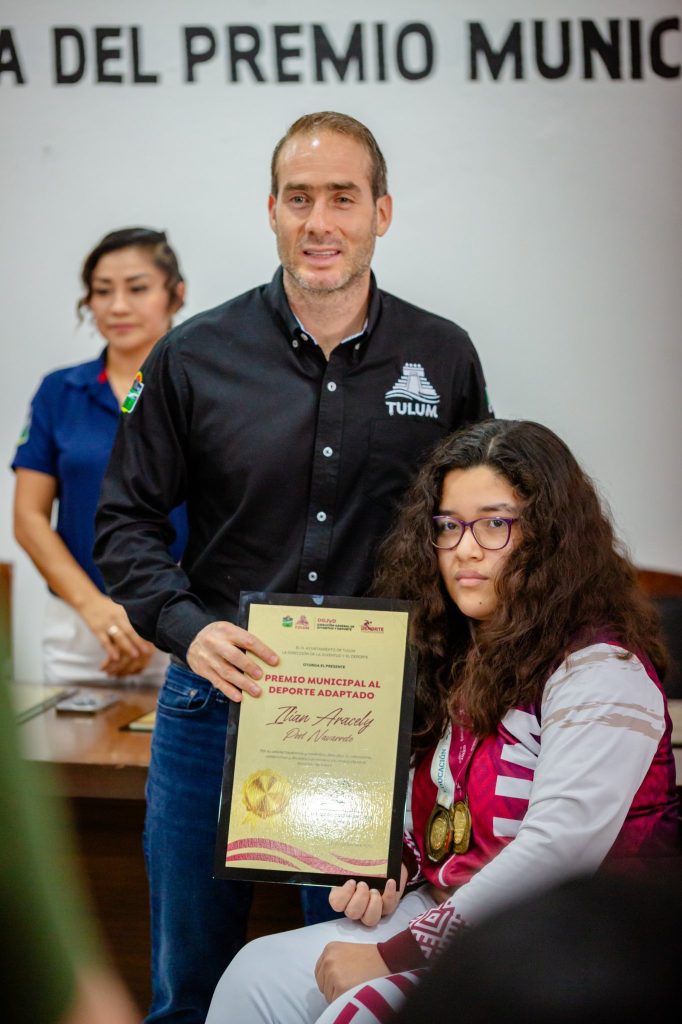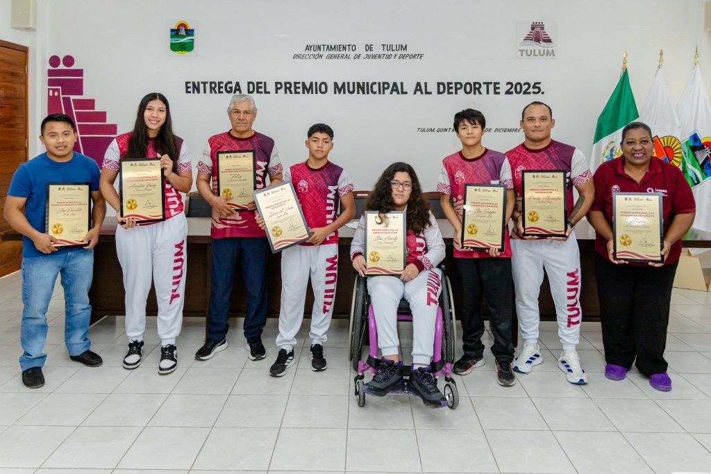 En esta entrega se reconocieron a 8 personas entre deportistas y profesores que con su trabajo y esfuerzo han logrados resultados importantes a nivel local, estatal, nacional e internacionalmente. Con este acto se reafirme el compromiso real y en efectivo con las y los deportistas tulumnenses.